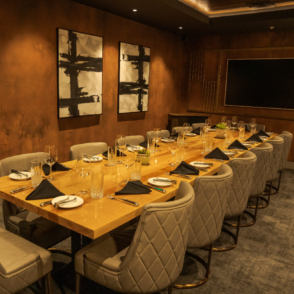 Nuestros Comedores Privados están equipados con internet dedicado de alta velocidad para la transmisión en alta definición de su próximo seminario web con televisores de alta definición de 75″.